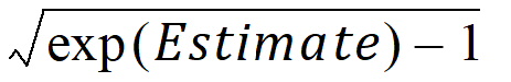 exp(Estimate) / (2 * (exp(Estimate) – 1)) * Estimate * (%RSEuntransformed)